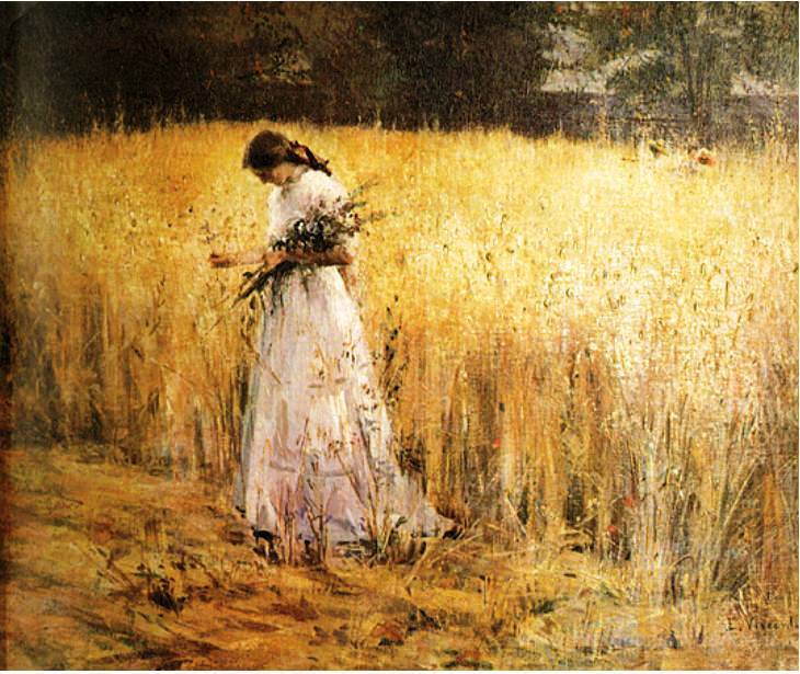 Ti offriamo una riproduzione artigianale su tela dell'opera famosa 'Mo?a no Trigal' di Eliseu Visconti, dal Museo delle Riproduzioni.