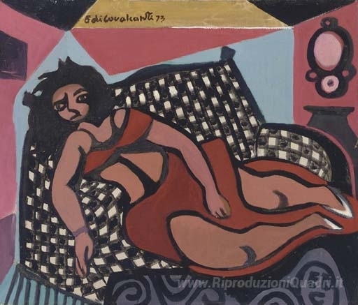 Ti offriamo una riproduzione artigianale su tela dell'opera famosa 'Mulata No Divano' di Emiliano Di Cavalcanti, dal Museo delle Riproduzioni.