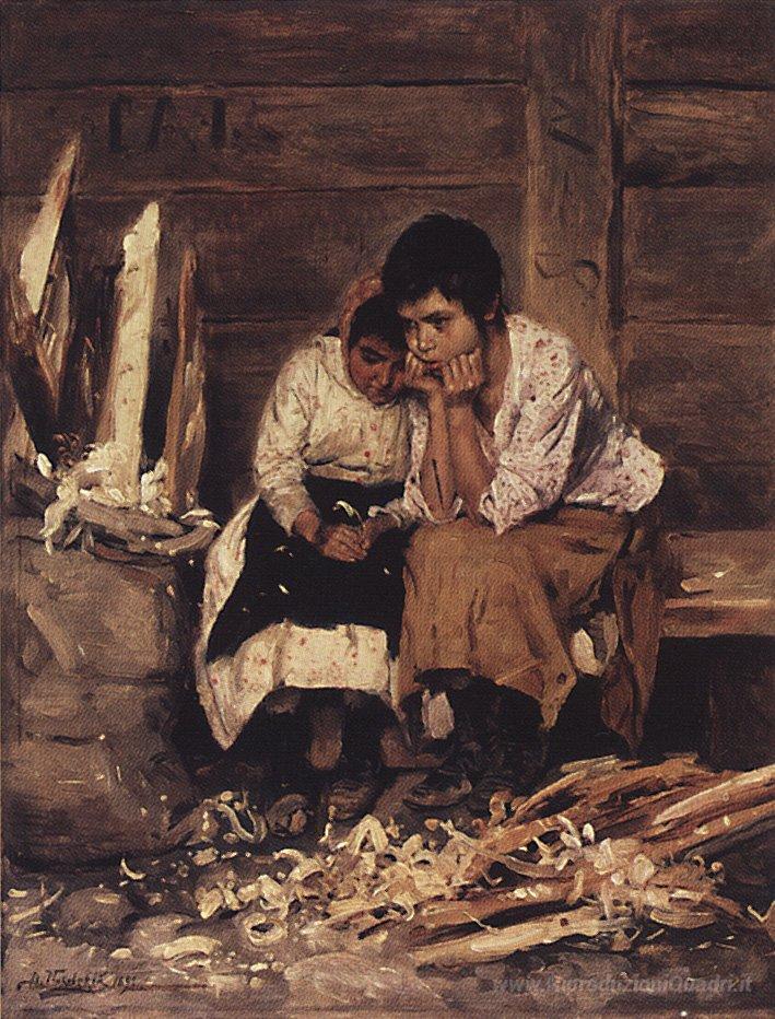 Benvenuti nel nostro prestigioso catalogo di dipinti a olio italiani, dove l'arte si fonde con l'eleganza e la tradizione. Tra le nostre eccezionali proposte spicca l'opera Nel corso dei chip dell'artista Vladimir Makovsky, un capolavoro che incarna l'essenza dell'arte russa del XIX secolo. Makovsky, noto per la sua abilità nell'illustrare scene di vita quotidiana con grande sensibilità, offre in questo dipinto una visione affascinante e intima della società russa dell'epoca.