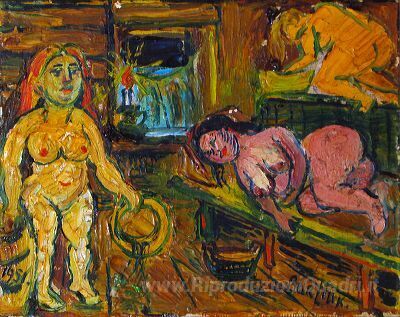 Ti offriamo una riproduzione artigianale su tela dell'opera famosa 'Nella stabilimento balneare' di David Burliuk, dal Museo delle Riproduzioni.