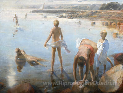 Ti offriamo una riproduzione artigianale su tela dell'opera famosa 'Nevlungshavn' di Odd Nerdrum, dal Museo delle Riproduzioni.