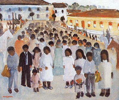 Ti offriamo una riproduzione artigianale su tela dell'opera famosa 'O Enterro de Crian?a em S?o Jo?o del Rey' di Jose Pancetti, dal Museo delle Riproduzioni.
