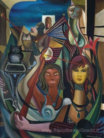 Ti offriamo una riproduzione artigianale su tela dell'opera famosa 'O Homem e una macchina' di Emiliano Di Cavalcanti, dal Museo delle Riproduzioni.