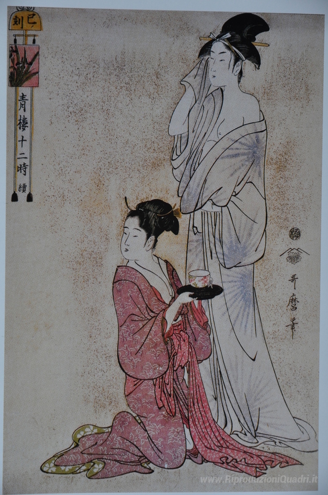 Ti offriamo una riproduzione artigianale su tela dell'opera famosa 'Ora del Serpente' di Kitagawa Utamaro, dal Museo delle Riproduzioni.