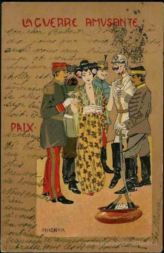 Ti offriamo una riproduzione artigianale su tela dell'opera famosa 'Pace' di Raphael Kirchner, dal Museo delle Riproduzioni.