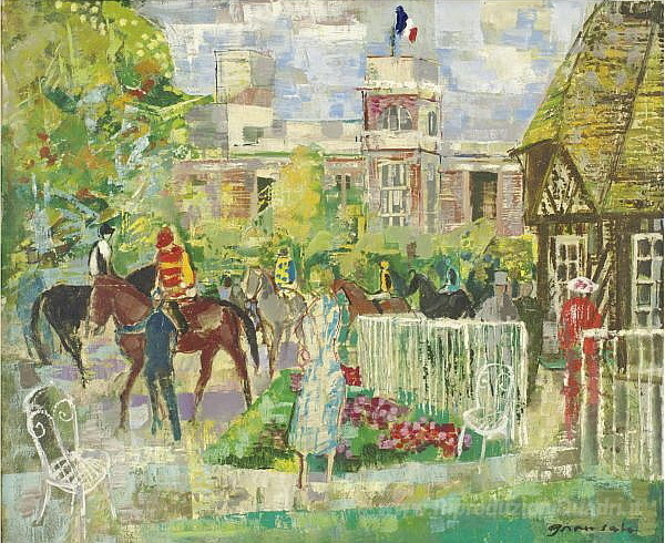 Ti offriamo una riproduzione artigianale su tela dell'opera famosa 'Paddock un Deauville' di Emilio Grau Sala, dal Museo delle Riproduzioni.