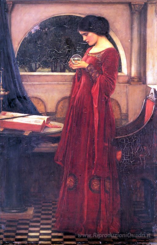Ti offriamo una riproduzione artigianale su tela dell'opera famosa 'Palla di cristallo' di John William Waterhouse, dal Museo delle Riproduzioni.