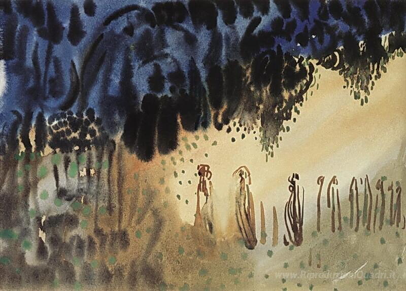 Ti offriamo una riproduzione artigianale su tela dell'opera famosa 'Passeggiata serale' di Martiros Saryan, dal Museo delle Riproduzioni.