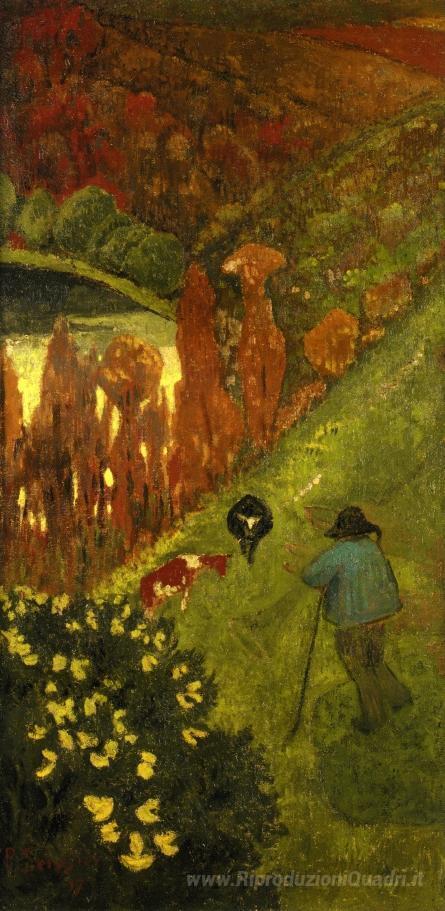 Ti offriamo una riproduzione artigianale su tela dell'opera famosa 'Pastore nella Valle di Chateauneuf' di Paul Serusier, dal Museo delle Riproduzioni.