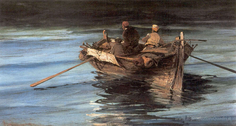 Ti offriamo una riproduzione artigianale su tela dell'opera famosa 'Peschereccio' di Konstantinos Volanakis, dal Museo delle Riproduzioni.
