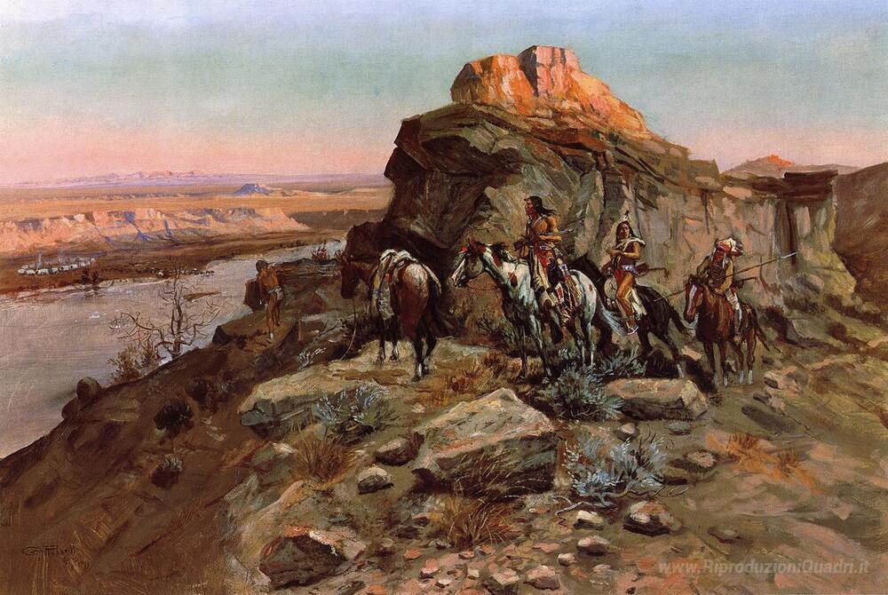 Benvenuti nel mondo affascinante dei dipinti a olio, dove ogni opera racconta una storia unica e incarna la maestria di artisti straordinari. Oggi vi presentiamo un capolavoro di Charles M. Russell, intitolato Pianificare l'attacco. Russell, noto per la sua abilità nel catturare l'essenza e la bellezza della vita occidentale, unisce tecnica e passione in un'opera che trasmette un profondo senso di avventura.