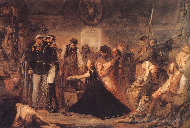 Ti offriamo una riproduzione artigianale su tela dell'opera famosa 'Polonia' di Jan Matejko, dal Museo delle Riproduzioni.