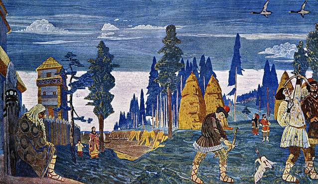Ti offriamo una riproduzione artigianale su tela dell'opera famosa 'Pomeranians. Mattina.' di Nicholas Roerich, dal Museo delle Riproduzioni.