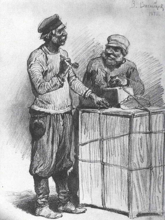 Ti offriamo una riproduzione artigianale su tela dell'opera famosa 'Porters' di Viktor Vasnetsov, dal Museo delle Riproduzioni.