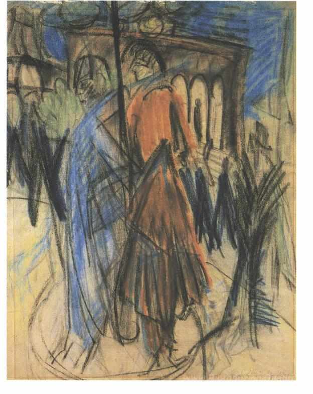 Ti offriamo una riproduzione artigianale su tela dell'opera famosa 'Postdamerplatz' di Ernst Ludwig Kirchner, dal Museo delle Riproduzioni.