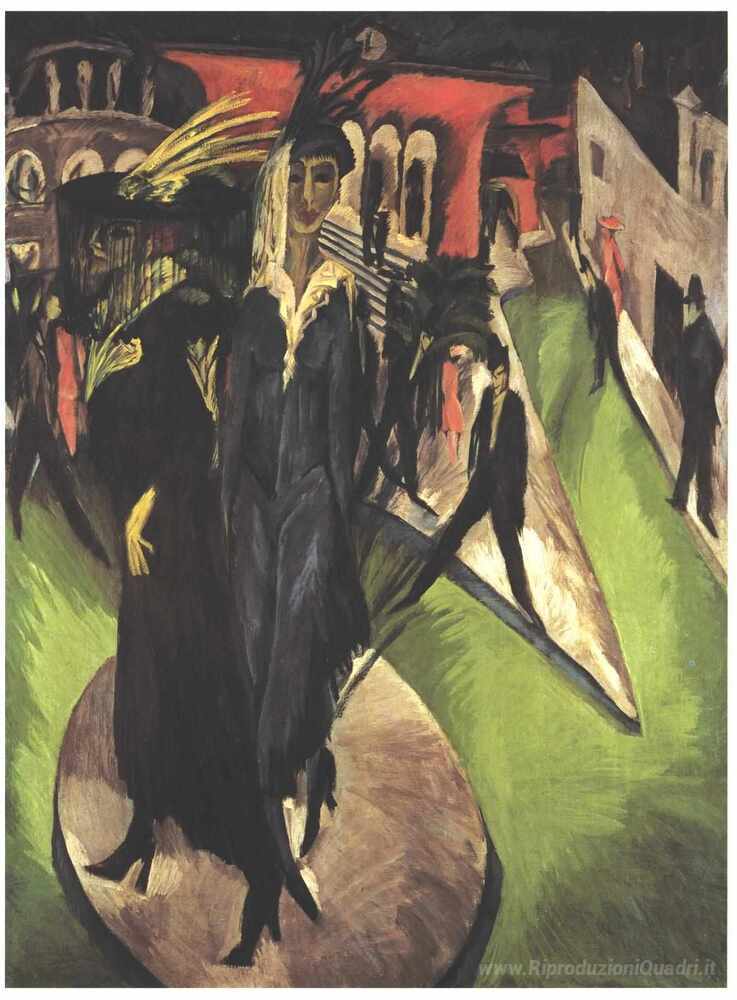 Ti offriamo una riproduzione artigianale su tela dell'opera famosa 'Postdamerplatz' di Ernst Ludwig Kirchner, dal Museo delle Riproduzioni.