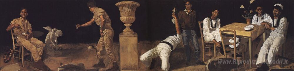 Ti offriamo una riproduzione artigianale su tela dell'opera famosa 'Pratica' di Yiannis Tsaroychis, dal Museo delle Riproduzioni.
