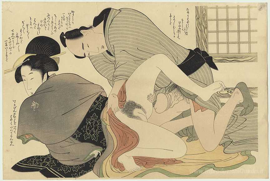 Ti offriamo una riproduzione artigianale su tela dell'opera famosa 'Prelude to Desire' di Kitagawa Utamaro, dal Museo delle Riproduzioni.