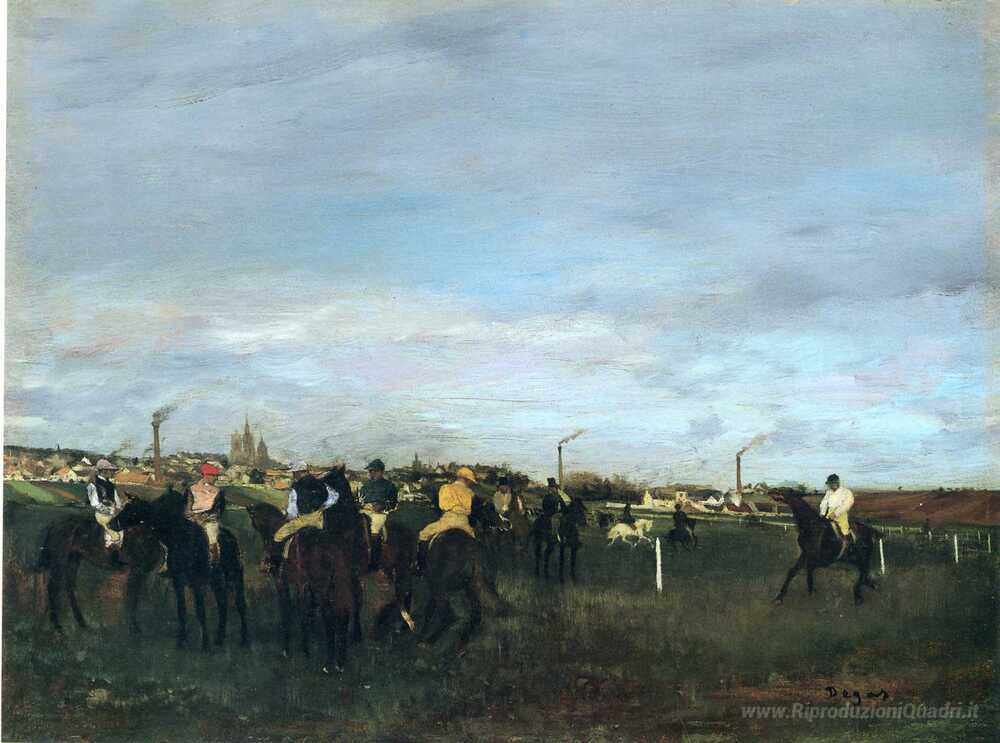 Ti offriamo una riproduzione artigianale su tela dell'opera famosa 'Prima della gara' di Edgar Degas, dal Museo delle Riproduzioni.