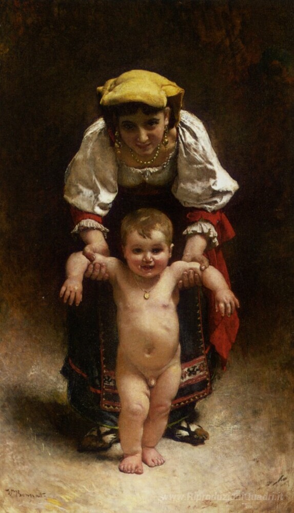 Benvenuti nel nostro selezionato catalogo di dipinti a olio, dove l'arte si fonde con l'emozione e la tradizione italiana. Tra le opere che proponiamo, spicca il capolavoro Primi passi dell'acclamato artista Leon Bonnat. Questo dipinto evoca la magia della crescita e della scoperta, riflettendo un momento di intimità e gioia attraverso la maestria dell'olio su tela.