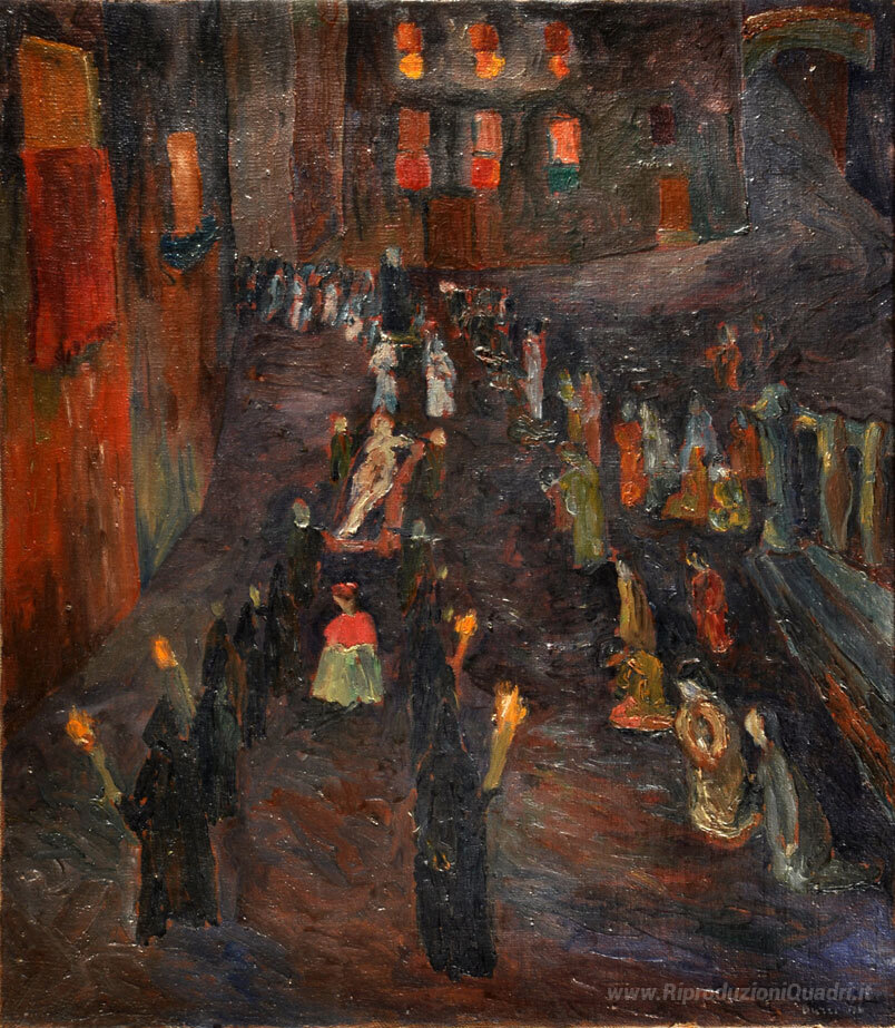 Ti offriamo una riproduzione artigianale su tela dell'opera famosa 'Processione del Cristo Morto' di Alberto Burri, dal Museo delle Riproduzioni.