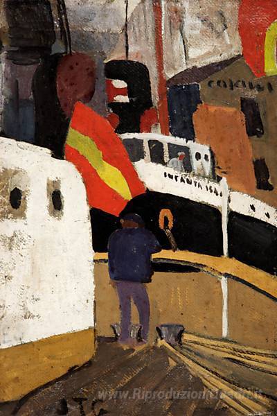 Ti offriamo una riproduzione artigianale su tela dell'opera famosa 'Puerto de Barcelona' di Joaquin Torres Garcia, dal Museo delle Riproduzioni.
