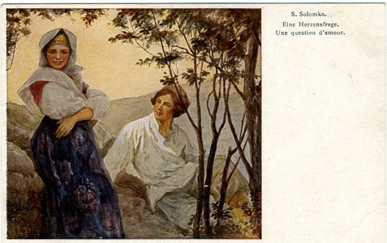 Ti offriamo una riproduzione artigianale su tela dell'opera famosa 'Questione' di Sergey Solomko, dal Museo delle Riproduzioni.