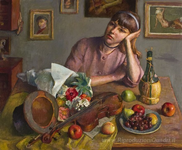 Ti offriamo una riproduzione artigianale su tela dell'opera famosa 'Rêverie' di Robert Brackman, dal Museo delle Riproduzioni.
