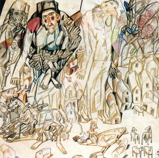Ti offriamo una riproduzione artigianale su tela dell'opera famosa 'Ragazza con un fiore' di Pavel Filonov, dal Museo delle Riproduzioni.