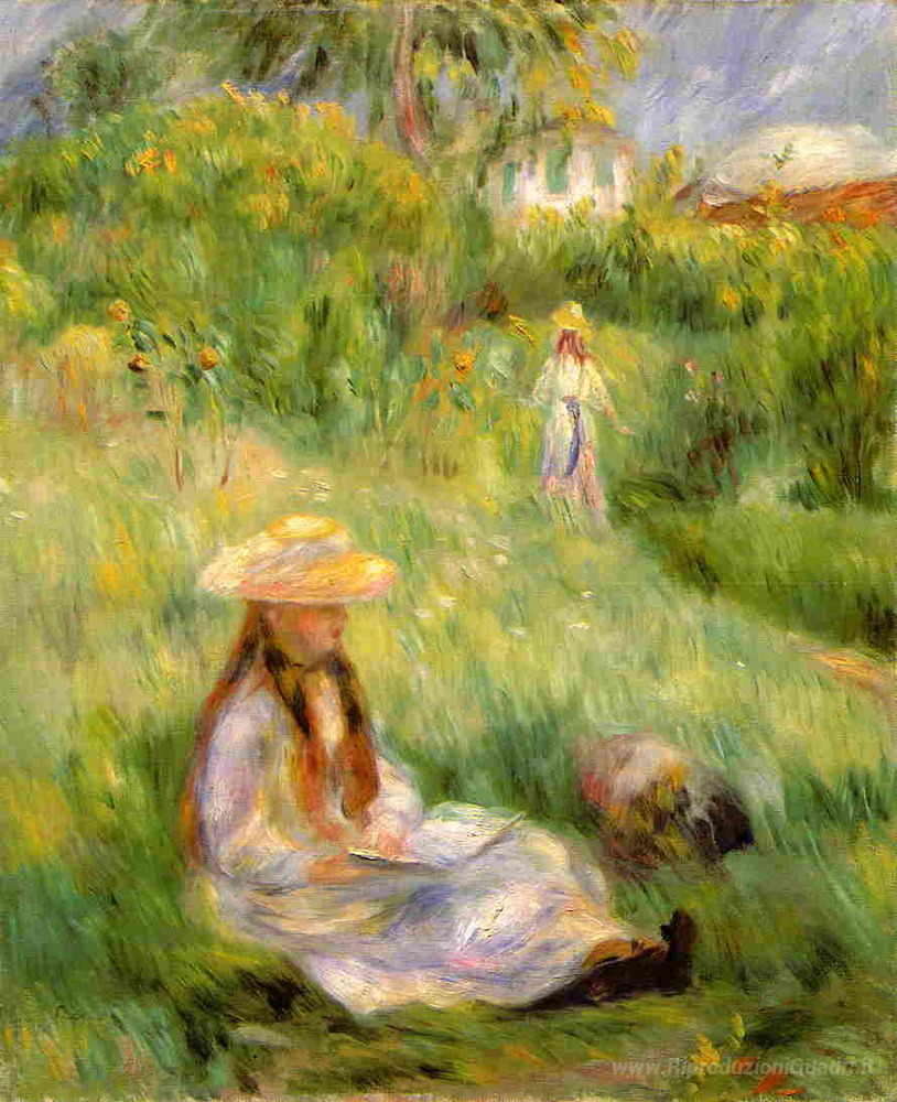 Ti offriamo una riproduzione artigianale su tela dell'opera famosa 'Ragazza in giardino a Mezy' di Pierre-Auguste Renoir, dal Museo delle Riproduzioni.