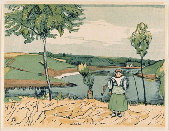 Ti offriamo una riproduzione artigianale su tela dell'opera famosa 'Ragazza olandesi nel paesaggio' di Kanae Yamamoto, dal Museo delle Riproduzioni.