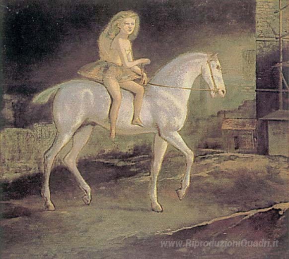 Ti offriamo una riproduzione artigianale su tela dell'opera famosa 'Ragazza su un cavallo bianco' di Balthus, dal Museo delle Riproduzioni.