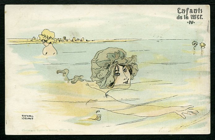 Ti offriamo una riproduzione artigianale su tela dell'opera famosa 'Ragazzi e ragazze in mare' di Raphael Kirchner, dal Museo delle Riproduzioni.