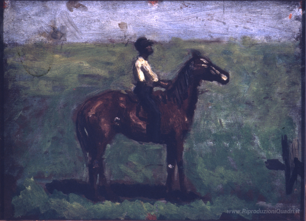 Ti offriamo una riproduzione artigianale su tela dell'opera famosa 'Ragazzo Negro su un cavallo baio' di Thomas Eakins, dal Museo delle Riproduzioni.
