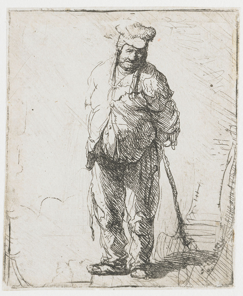 Ti offriamo una riproduzione artigianale su tela dell'opera famosa 'Ragged contadina con le sue mani dietro la schiena, possesso di ' di Rembrandt, dal Museo delle Riproduzioni.