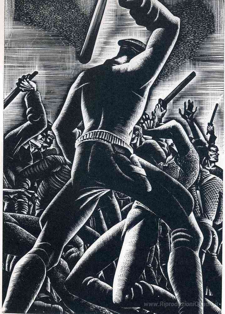 Ti offriamo una riproduzione artigianale su tela dell'opera famosa 'Railroaded' di Lynd Ward, dal Museo delle Riproduzioni.