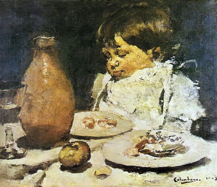 Ti offriamo una riproduzione artigianale su tela dell'opera famosa 'Refei??o interrompida' di Columbano Bordalo Pinheiro, dal Museo delle Riproduzioni.