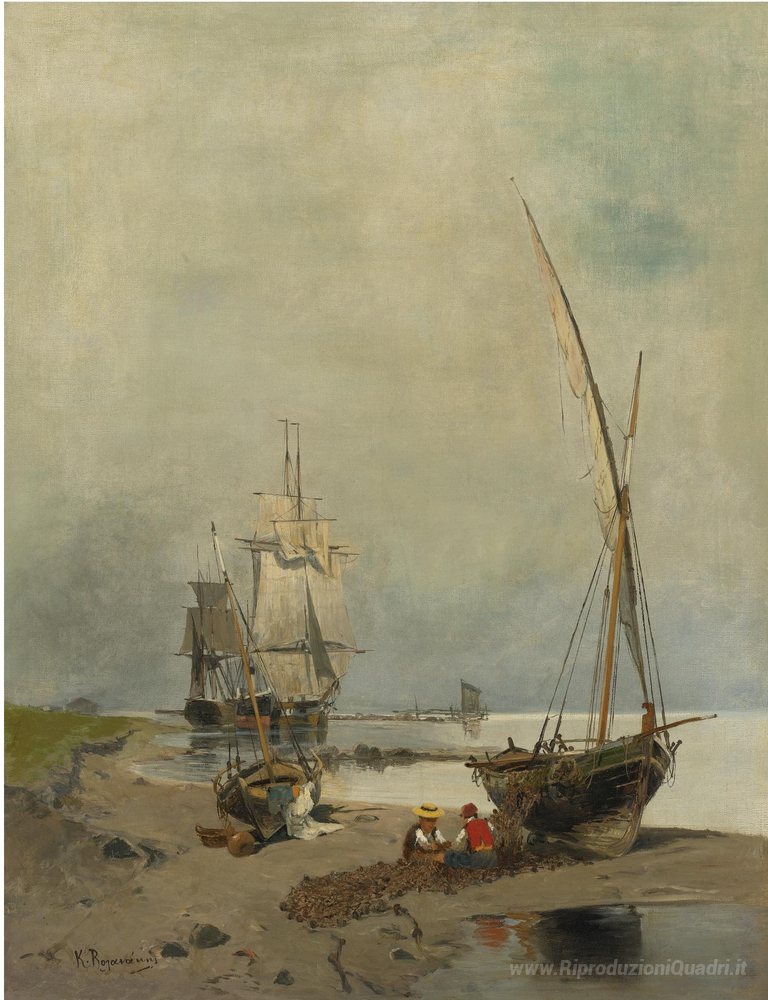 Ti offriamo una riproduzione artigianale su tela dell'opera famosa 'Riassettavano le reti' di Konstantinos Volanakis, dal Museo delle Riproduzioni.