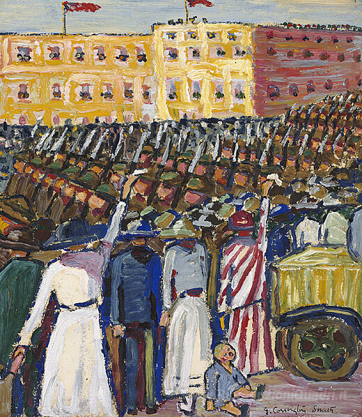 Ti offriamo una riproduzione artigianale su tela dell'opera famosa 'Rinforzi: Truppe in marcia' di Grace Cossington Smith, dal Museo delle Riproduzioni.