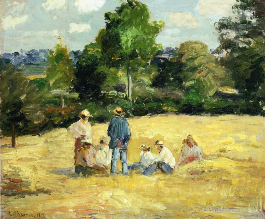 Ti offriamo una riproduzione artigianale su tela dell'opera famosa 'Riposo Disboscatrici, Montfoucault' di Camille Pissarro, dal Museo delle Riproduzioni.