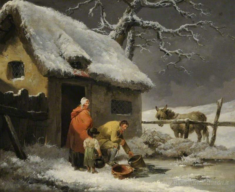 Ti offriamo una riproduzione artigianale su tela dell'opera famosa 'Rompendo il ghiaccio' di George Morland, dal Museo delle Riproduzioni.