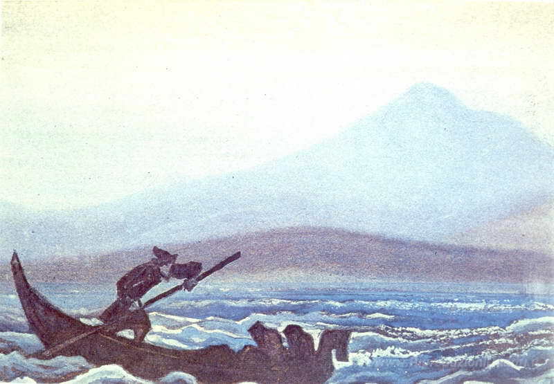 Ti offriamo una riproduzione artigianale su tela dell'opera famosa 'Runaways' di Nicholas Roerich, dal Museo delle Riproduzioni.