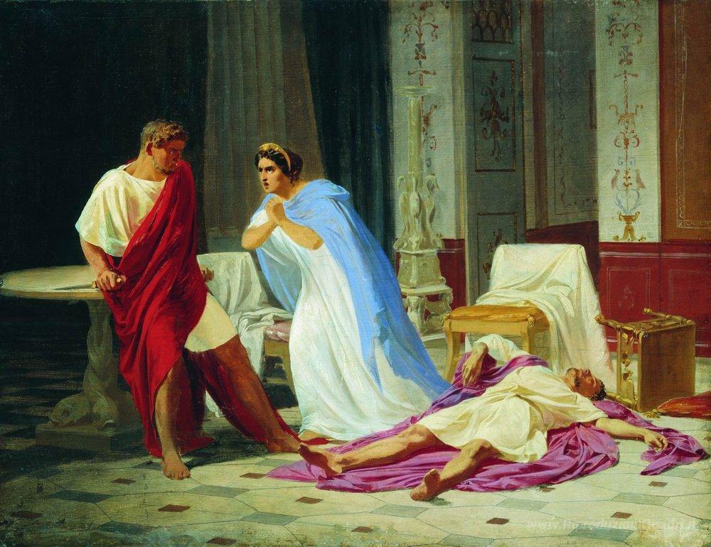 Ti offriamo una riproduzione artigianale su tela dell'opera famosa 'Scena del delitto' di Fyodor Bronnikov, dal Museo delle Riproduzioni.