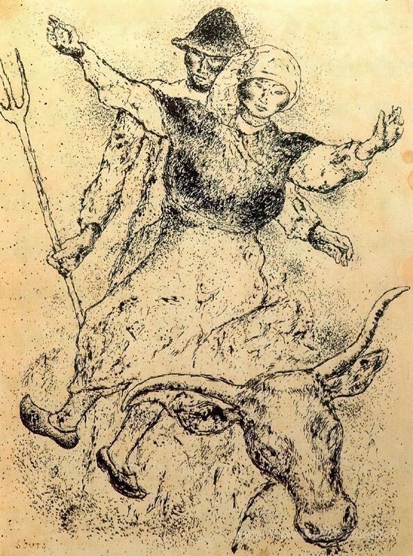 Ti offriamo una riproduzione artigianale su tela dell'opera famosa 'Scena Galiziano' di Arturo Souto, dal Museo delle Riproduzioni.