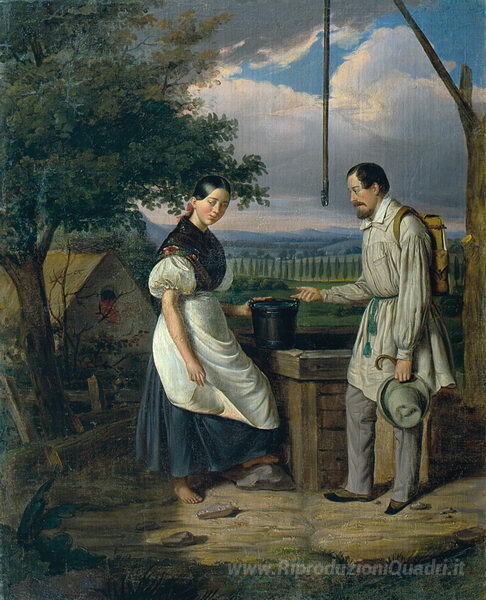 Ti offriamo una riproduzione artigianale su tela dell'opera famosa 'Scene a Fountain' di Constantin Daniel Rosenthal, dal Museo delle Riproduzioni.