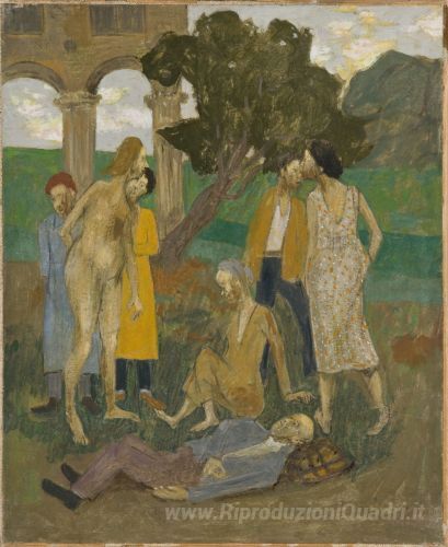 Ti offriamo una riproduzione artigianale su tela dell'opera famosa 'Scene Paysanne' di Grégoire Michonze, dal Museo delle Riproduzioni.