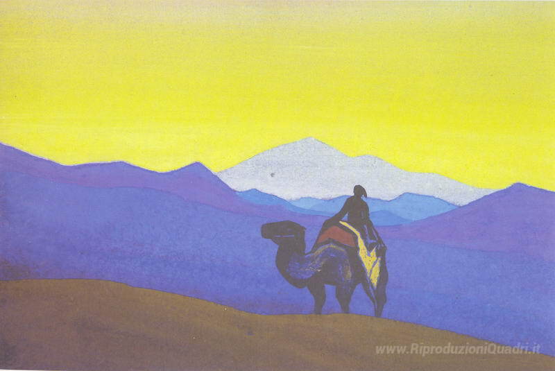 Ti offriamo una riproduzione artigianale su tela dell'opera famosa 'Sconosciuto solitario' di Nicholas Roerich, dal Museo delle Riproduzioni.