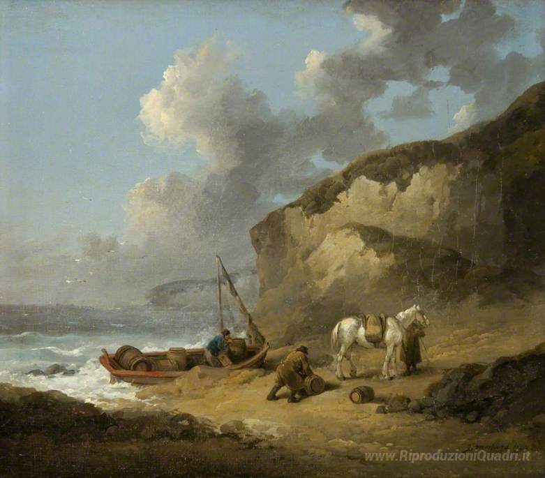 Scopri l'incanto dell'arte con il dipinto Sea-Costa Scena, Smugglers dell'illustre artista britannico George Morland. Morland, noto per la sua straordinaria capacità di catturare la vita rurale e le scene marine, utilizza tecniche a olio con una maestria ineguagliabile, conferendo ai suoi lavori una profondità che affascina e coinvolge. La rappresentazione di questa scena costiera è un perfetto esempio della sua abilità nel creare atmosfere uniche e suggestive.
