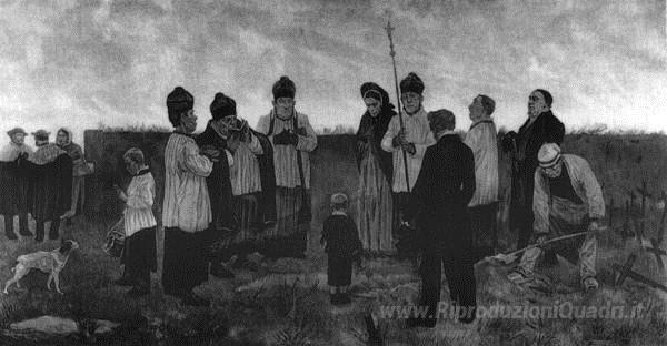 Ti offriamo una riproduzione artigianale su tela dell'opera famosa 'Sepoltura nel Paese vallone' di Felicien Rops, dal Museo delle Riproduzioni.