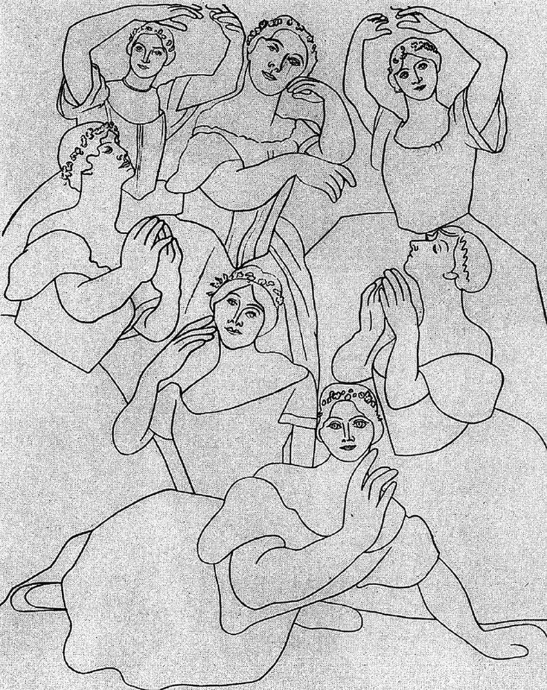 Ti offriamo una riproduzione artigianale su tela dell'opera famosa 'Sette ballerine' di Pablo Picasso, dal Museo delle Riproduzioni.